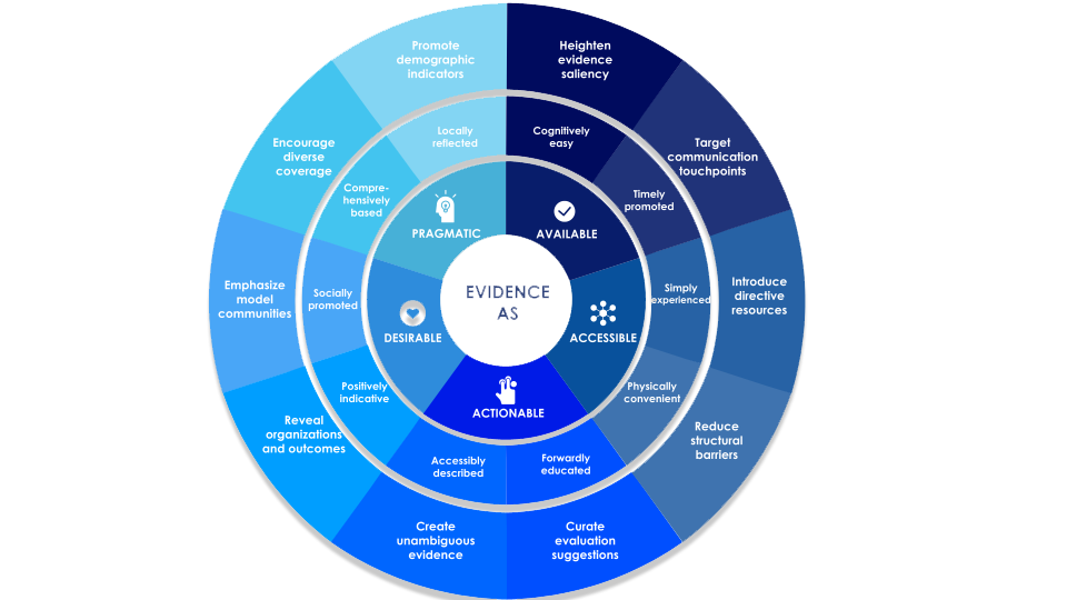 Ces résultats, associés aux leviers et cadres comportementaux pertinents, sont devenus le fondement du cadre d'utilisation des données probantes.