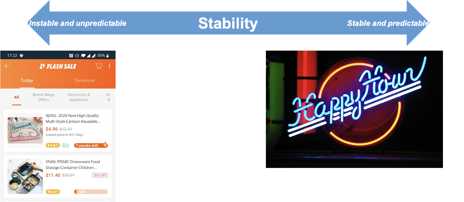 L'exemple le plus courant et le plus facile à comprendre d'un bon d'achat totalement prévisible est celui que nous avons tous vu (et apprécié) : la réduction "happy hour" ! Si vous entrez dans un bar pendant l'happy hour, personne ne peut vous refuser la réduction. La partie gauche du spectre montre une vente flash, fréquente sur les plateformes de commerce électronique. Rien de ce qui concerne la vente flash n'est prévisible : quel sera le montant de la réduction ? Quels produits seront en promotion ? Si je reviens dans une heure, est-ce que je bénéficierai toujours de cette réduction ? Si je reviens demain à la même heure, les mêmes produits feront-ils l'objet d'une réduction ? C'est l'effet recherché par l'entreprise : elle utilise la curiosité pour inciter les gens à s'intéresser au produit.